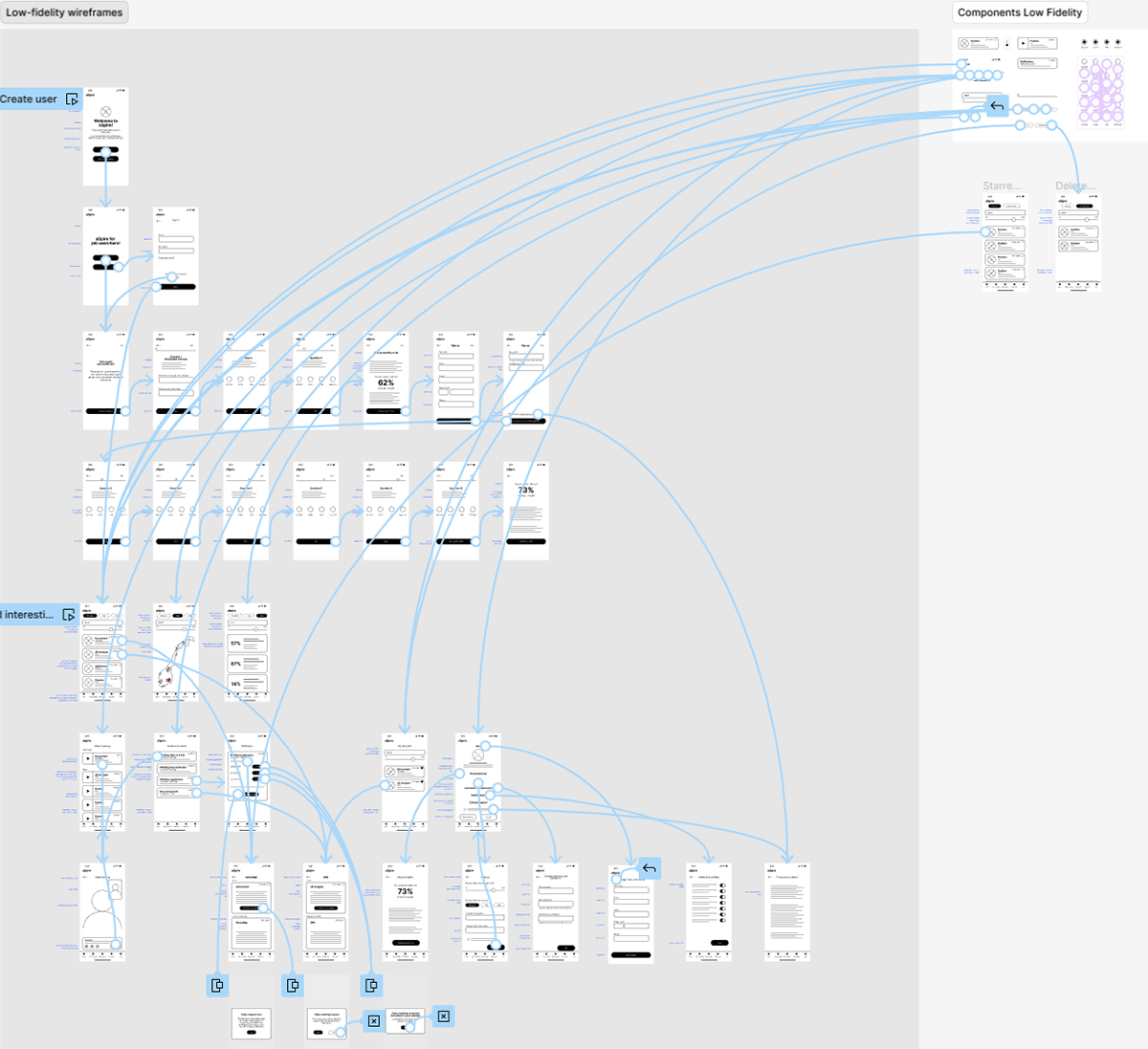 Developing low-fidelity wireframes is really beneficial for collaboration. It forced the team to think fast and not spend a lot of time focusing on details that will become a thing we will work on later in the process anyway. The flows and structure were our focus areas when developing low-fidelity wireframes.