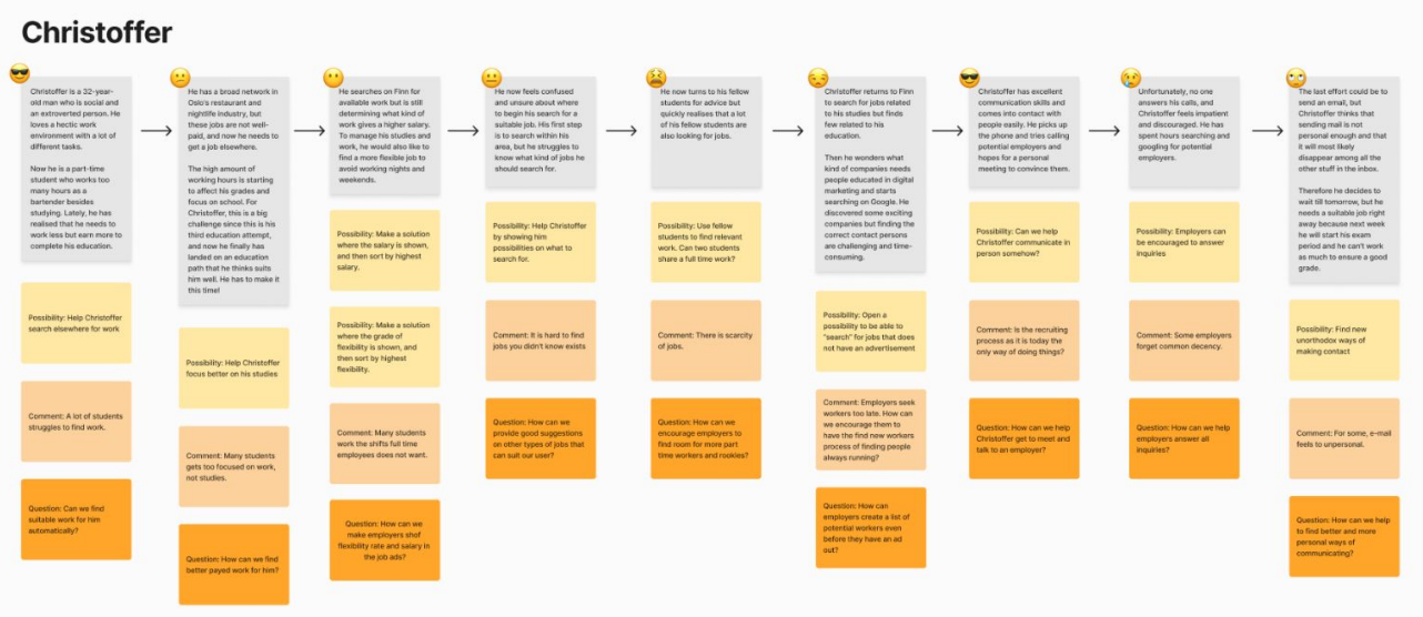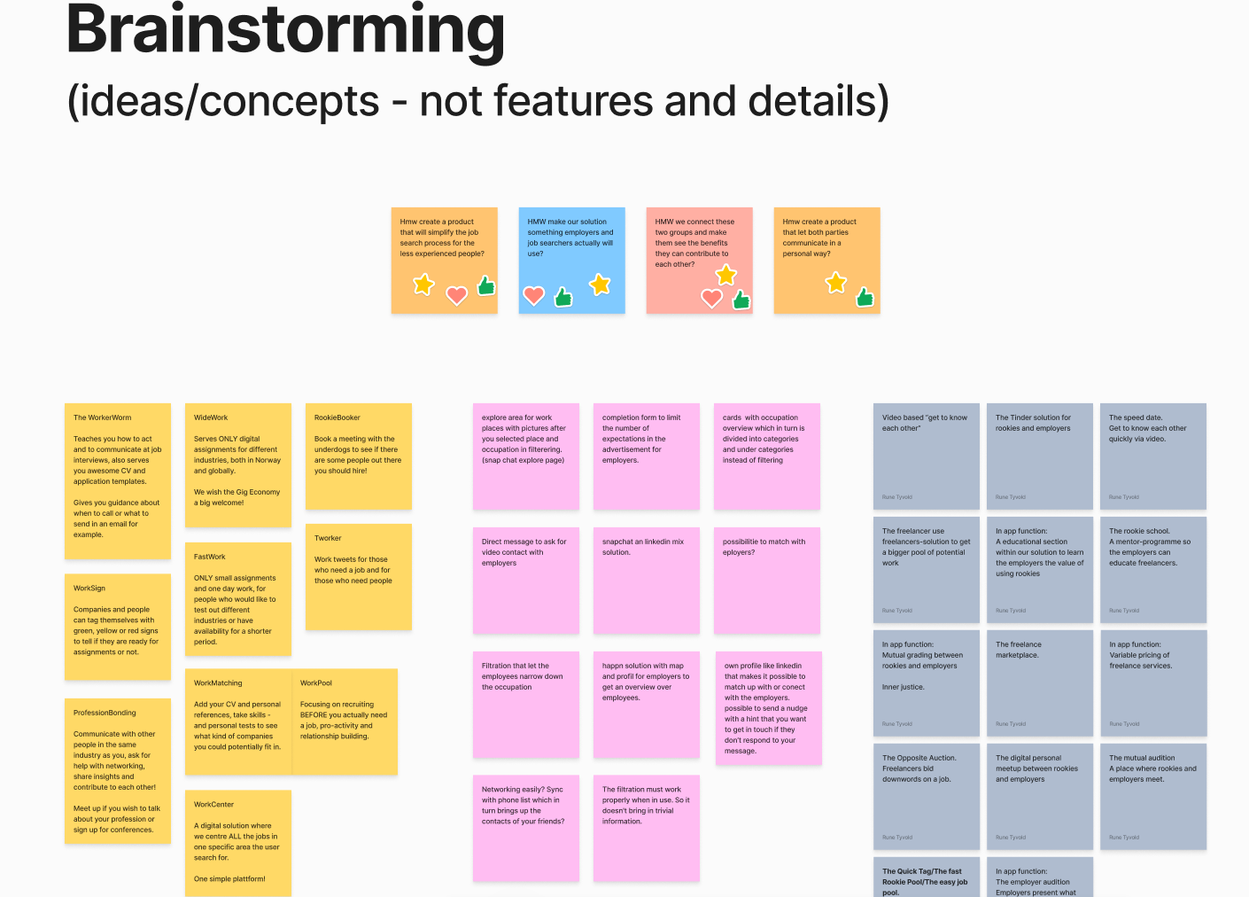 We were tasked to develop a solution to help people struggling to find suitable work and explore the job search process for two target groups: Full-time or part-time students and digital nomads (freelancers). From the brief, we read that both these groups can experience challenges finding work when they need it. At the same time, employers struggle to find suitable resources at short notice. The world is also evolving, and digital tools and systems are developing extremely fast, making us more digital than ever. This growth also affects the labor market, where the term Gig Economy has occurred.