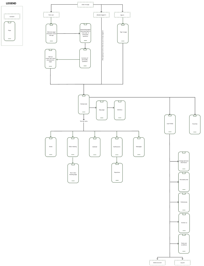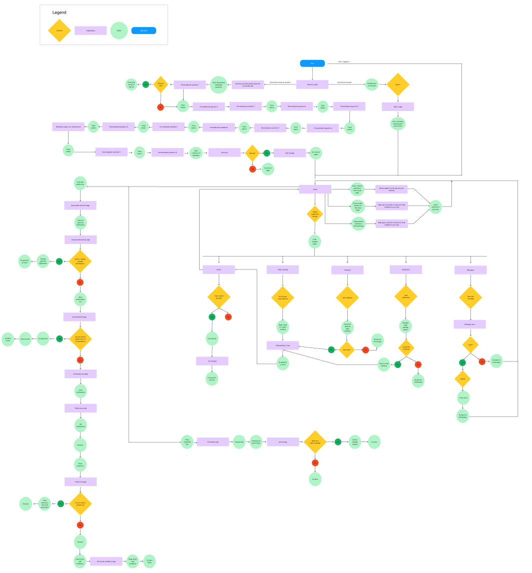 We made a user flow to show users' logical paths to explore our app. It maps out the user's entire experience, from the initial access point to the last interaction, detailing each touchpoint along the way. This can also help us show the result of their actions and identify and fix problems we may have before the next step.