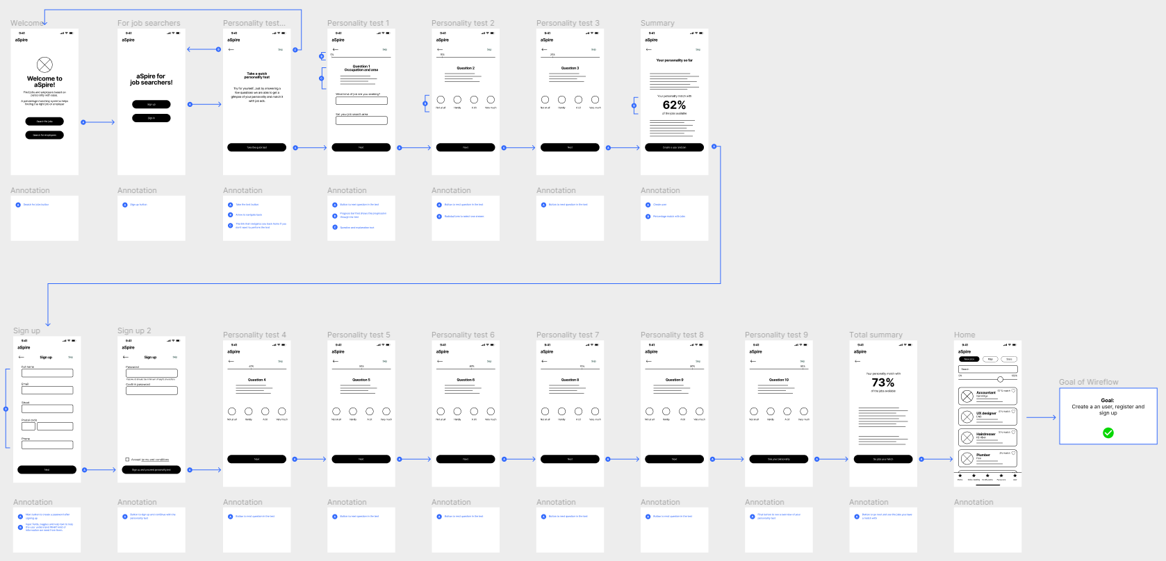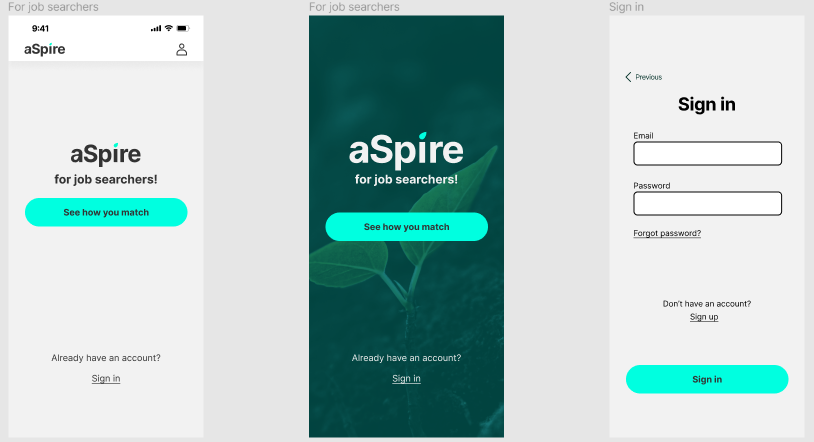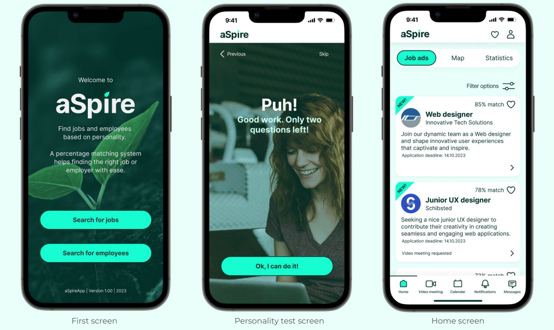 The aSpire is an app that aims to simplify the job search process for less experienced people. This is an easy matching-solution for rookies and employers, where mutual personality and values are the driving force for hiring.