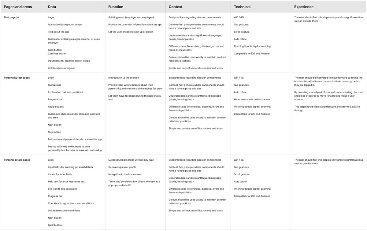 At the end of the research stage and after conducting a competitive analysis, we gathered requirements to understand the user's needs. This was an excellent way to start getting an overview of the functionalities of the app we are creating.