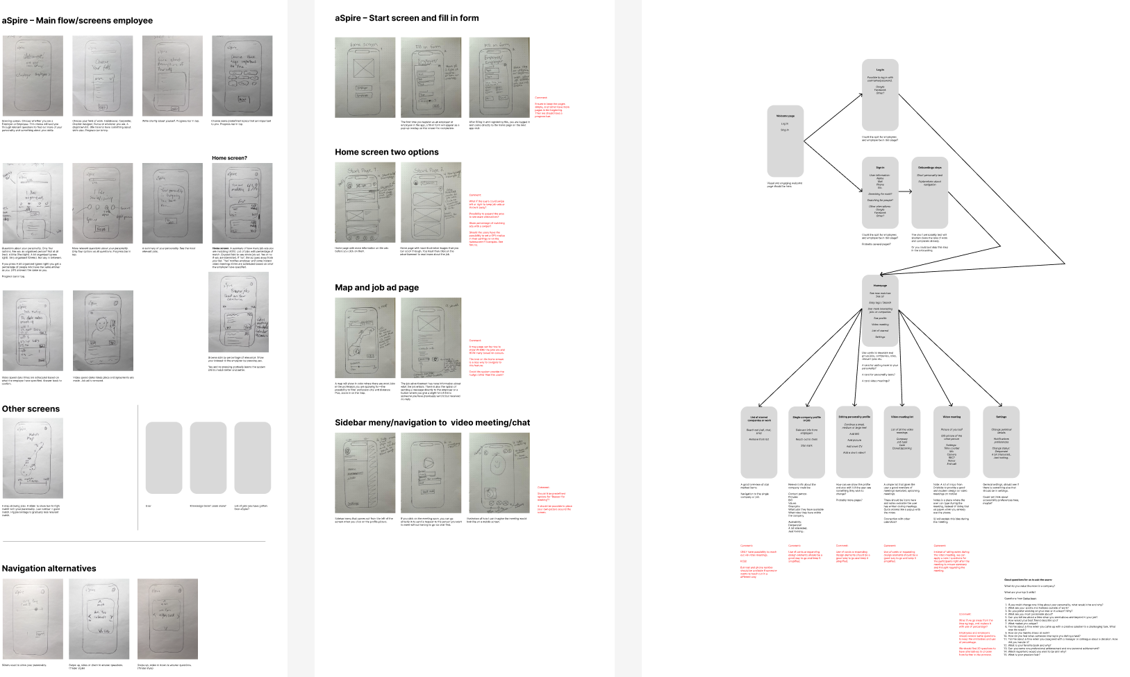 We did use some of the same persons from previous tests. It was interesting to collect insights from people who have already seen some parts of the solution. Our screening was the same as the last test. They needed to be or have been in a job search process the previous year and could be between 18 – 50 years old. Being in a job search process can affect people of different ages, and therefore, we still wanted to test the solution on several age groups. We managed to recruit two in their 20s, two in their 30s and 1 in their 40s