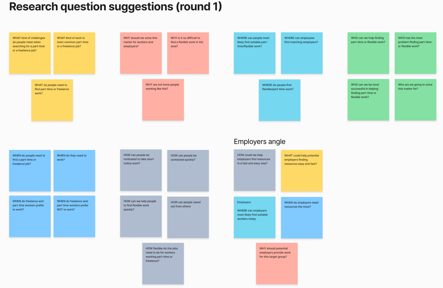 We determined our goals and questions at this stage with a workshop together. First, we came up with research questions separately before collaborating to tweak and refine the best questions. We did this step by step and ensured that we discussed all the aspects of what we wanted to learn in the beginning.