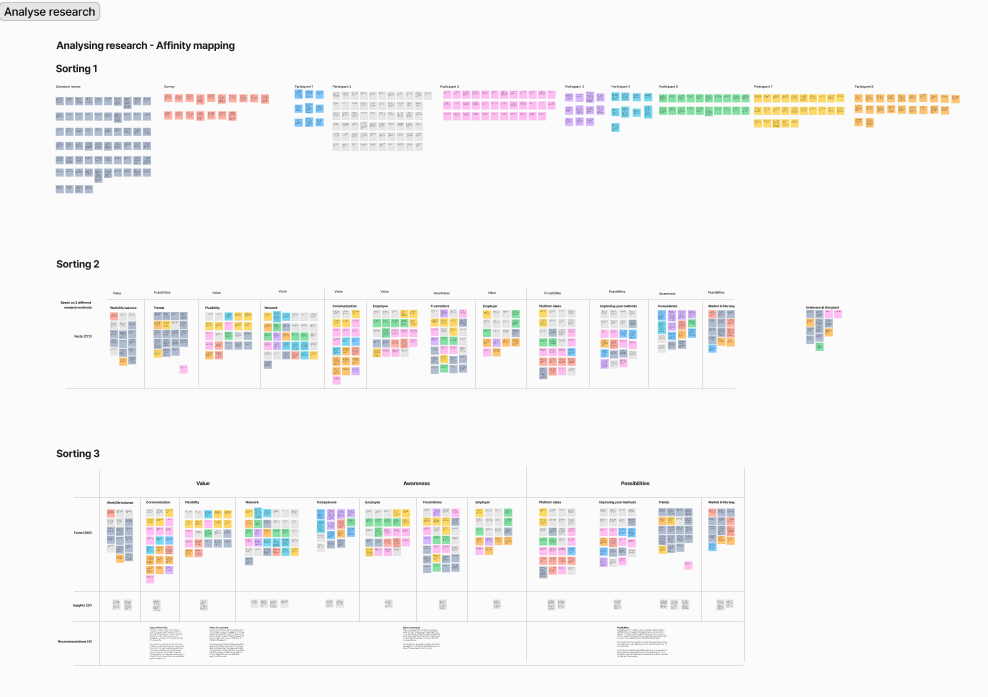 The findings was once again tremendous! Our analysis in the affinity mapping needed four rounds of sorting before we felt confident regarding the overview and pattern we needed to start with the insights.