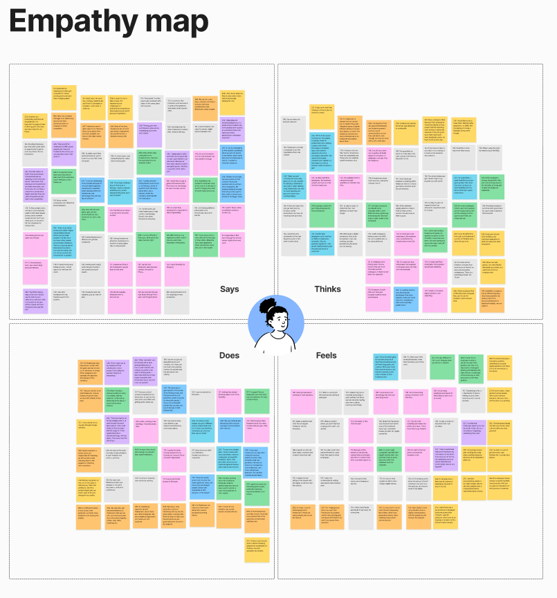 After we were done with conducting the research methods, we had a workshop with empathy mapping so we could empathize more with the persona and create it as detailed as possible. Both primary and secondary personas will give us a broad understanding of users' personalities, motivations, frustrations, and goals.